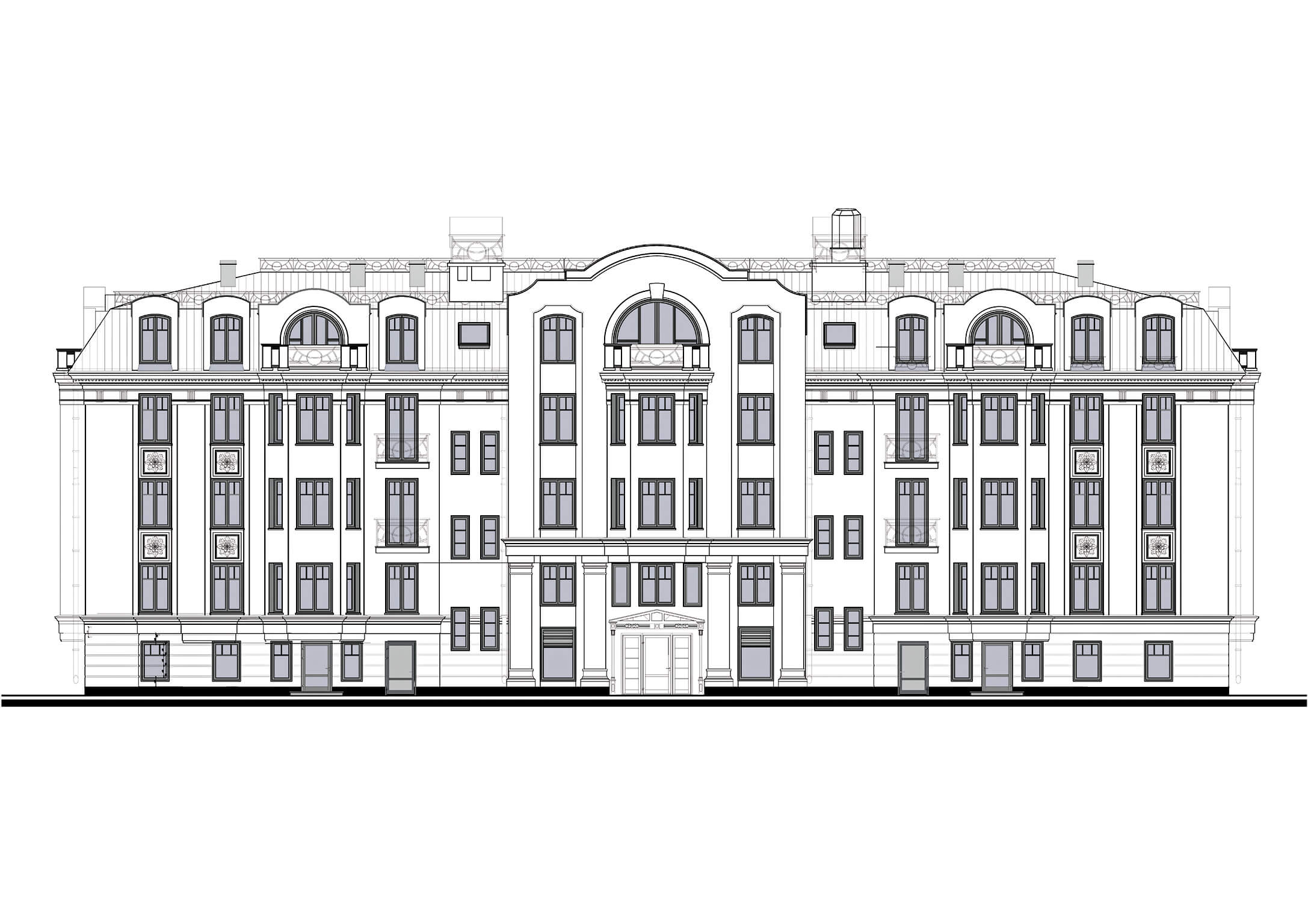 Дома с отделкой фасадов из декоративной штукатурки, изящной лепниной и французскими балконами, естественно вписываются в улицу с невысокими зданиями и большими зонами зеленых насаждений.