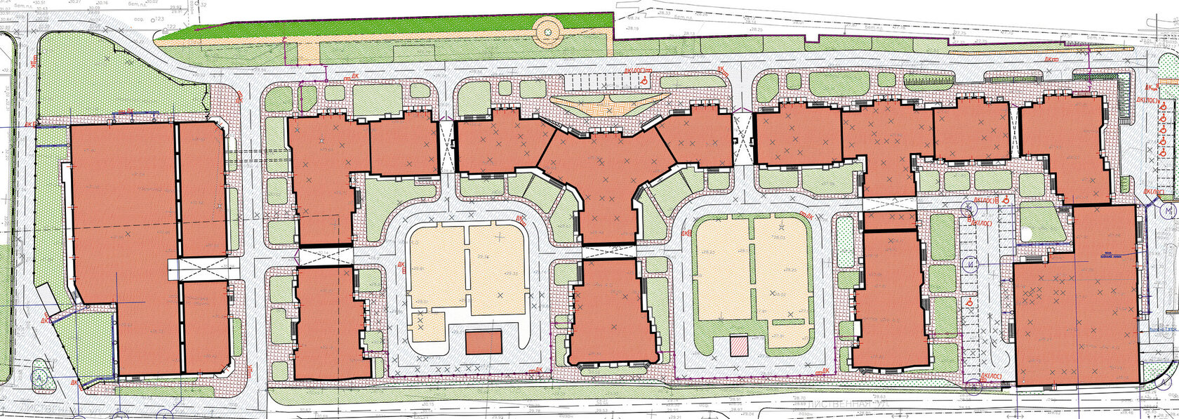 При разработке благоустройства, сохранена окружающая растительность и предусмотрены большие зоны отдыха со скамейками, игровыми площадками, газонами и декоративными деревьями. Благодаря удачному планировочному решению, секции образуют закрытый двор, что создает ощущение безопасности и комфорта.